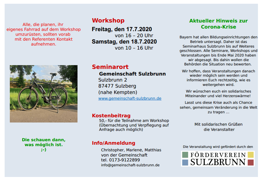Bei Interesse zu einem ähnlichen Workshop / Seminar mit allgemeinen Temen und konkretem Umbau eines Ebikes bitte melden.